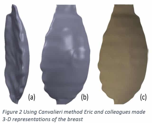 Currently there are a number of methods used for measuring breast volume including: anthropometric, Archimedes principle, Grossman-Rounder Device, negative casting, mammography or ultrasound, and 3D surface imaging (Eric). Although Eric and colleagues found that all of these methods don’t account for the tissue lateral to the pectoral folds or the breast tissue along the chest wall.