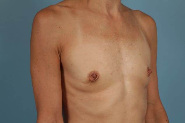 Bilateral nipple sparing mastectomies following 2-stage expander/implant submuscular breast reconstruction, 770 cc full profile smooth round silicone gel implants, 10 months post op