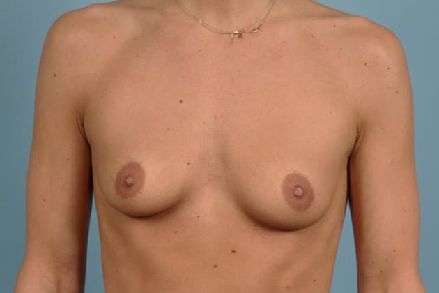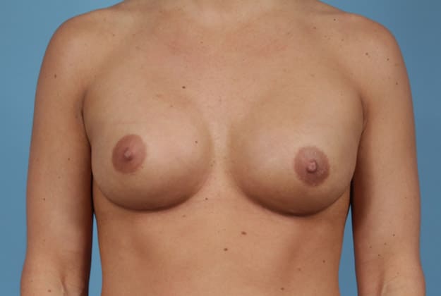 Bilateral nipple sparing mastectomies followed by 2-stage expander/implant submuscular breast reconstruction, 545 cc moderate height silicone gel implants, 2 years post op