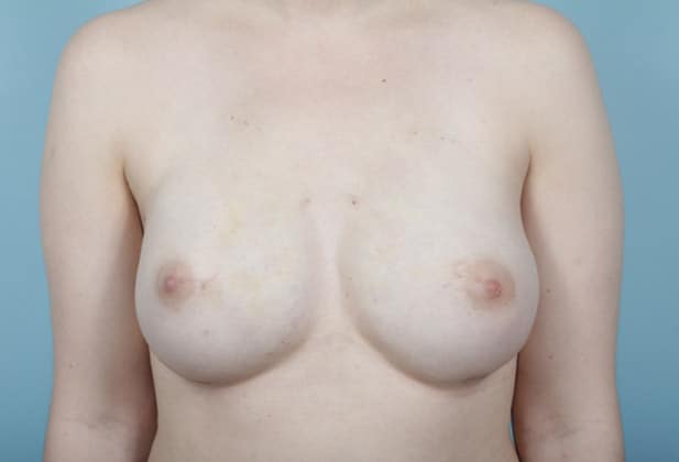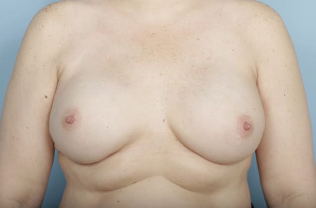 Bilateral nipple sparing mastectomies with direct-to-implant prepectoral breast reconstruction, 240 cc moderate profile smooth round silicone gel implants, 3 months post op